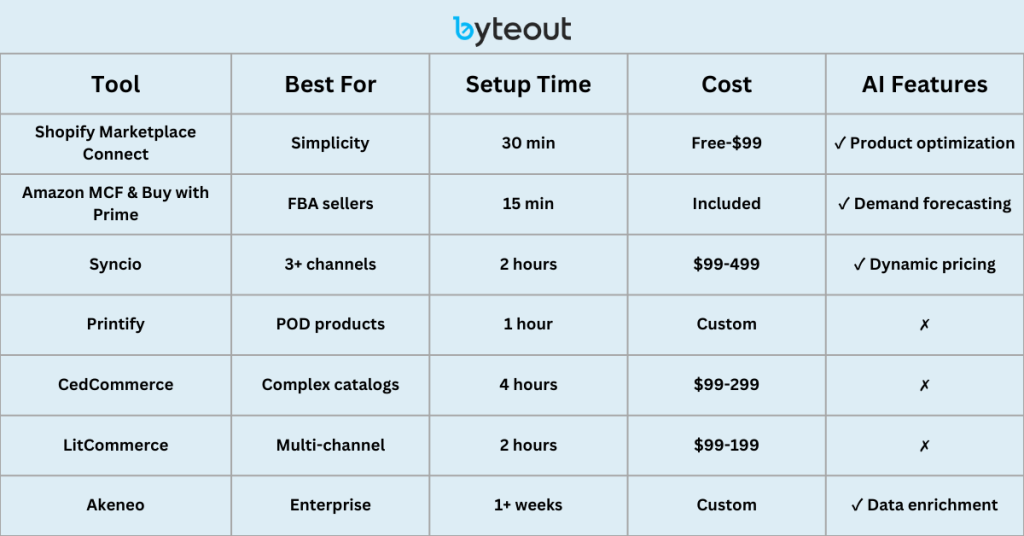 For sellers with more custom needs, such as advanced listing rules, AI-powered optimization, or multi-marketplace operations, solutions like Syncio or Akeneo provide additional flexibility and control.