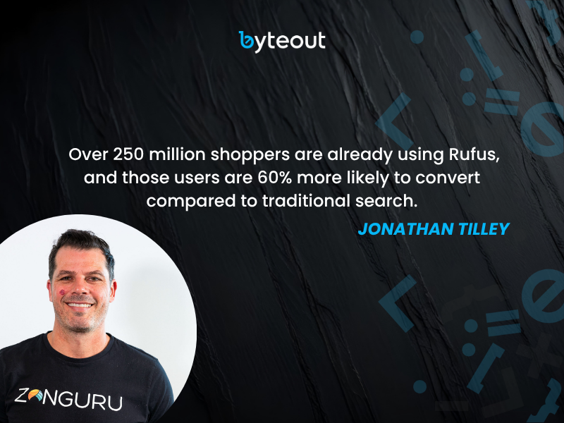 According to Amazon data shared in the interview, over 250 million shoppers are already using Rufus, and those users are 60% more likely to convert compared to traditional search.